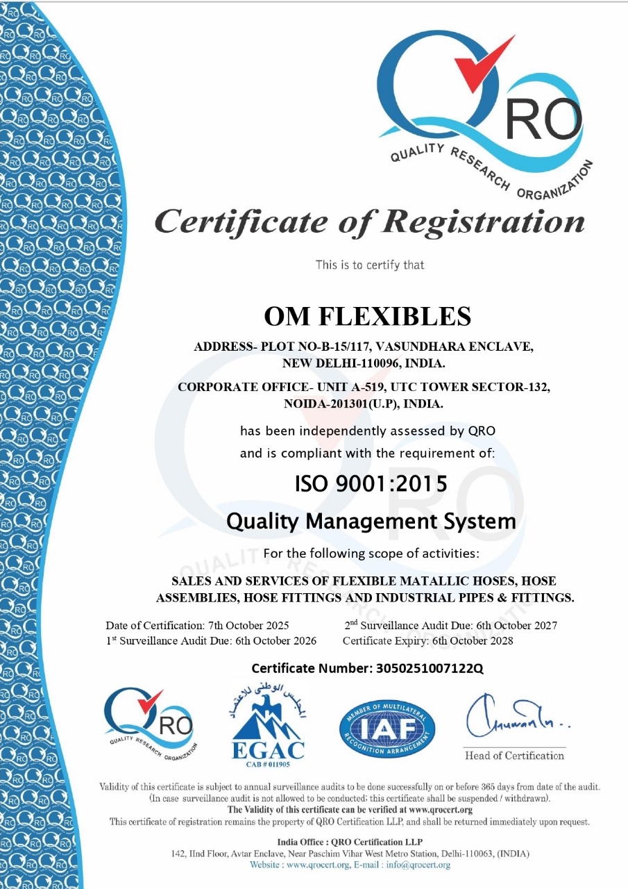 OM FLEXIBLES is an ISO 9001:2015 Certified company and are committed to satisfied our customers by offering them best quality , price & services of their requirements.This can be achieved in Om Flexibles by our quality systems & professional team in all respective departments . Our Quality Assurance system assures every product to go through our Quality Systems from Material Control In Process Quality Control Systems Documentation & Traceability Management Review Corrective & Preventive Control.